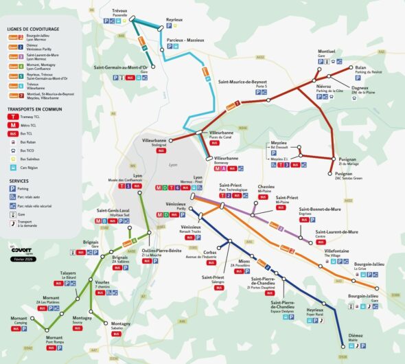 • Des arrêts connectés au réseau TCL, aux gares TER, aux parcs relais et aux Voies Lyonnaises ;