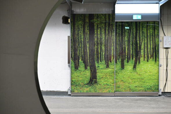 Rendez-vous en terre inconnue à La station Gratte-Ciel à Villeurbanne ! Une forêt luxuriante invite les voyageurs à faire de l’attente un moment de détente. L’œuvre « Réensauvageons-nous, la nature reprend ses droits », pensée en résonnance avec la future forêt urbaine de Gratte-Ciel, guide les usagers à l’autre bout du monde où la nature est reine.