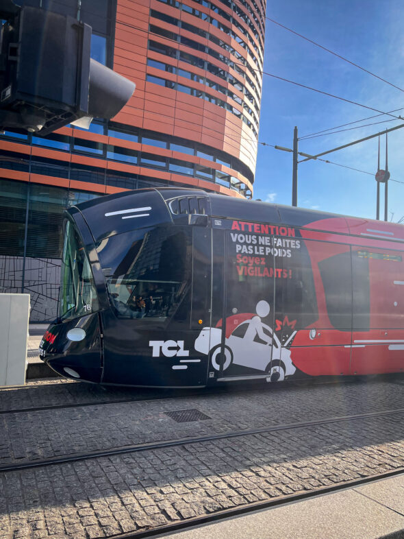Afin de sensibiliser les usagers de la voirie aux dangers aux abords des lignes de tramway, SYTRAL Mobilités déploie une campagne « impactante » sur plusieurs nez de rames. L’objectif de cette campagne : inviter à la vigilance.