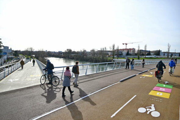 Le Pont de Saint-Jean est accessible aux piétons, aux cycles et plus tard, au tram T9.